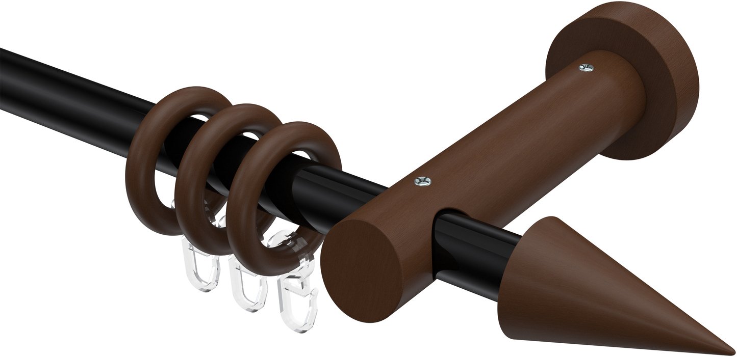 Gardinenstangen aus Metall / Holz in 20 mm Ø, 1-läufig, Modell TALENA - Siveo Schwarz / Nussbaum lackiert