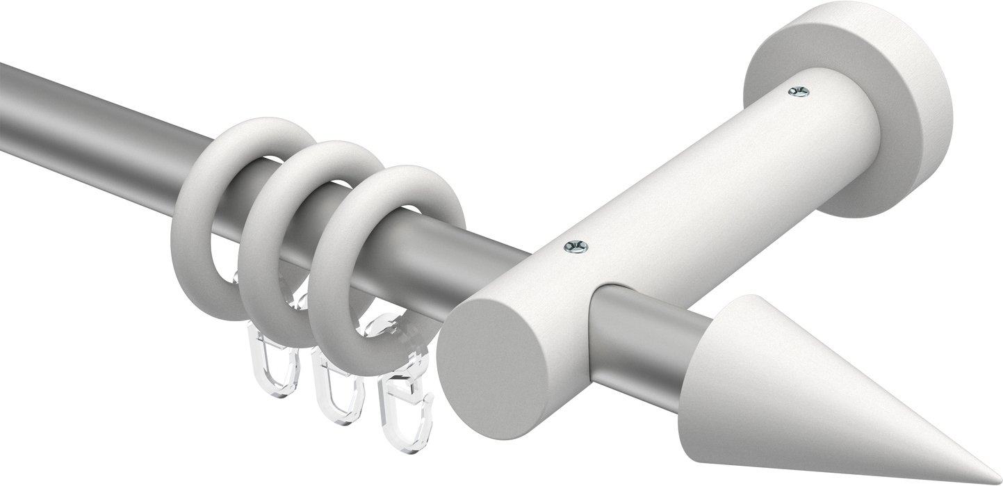 Gardinenstangen aus Metall / Holz in 20 mm Ø, 1-läufig, Modell TALENA - Siveo Silbergrau / Weiß lackiert