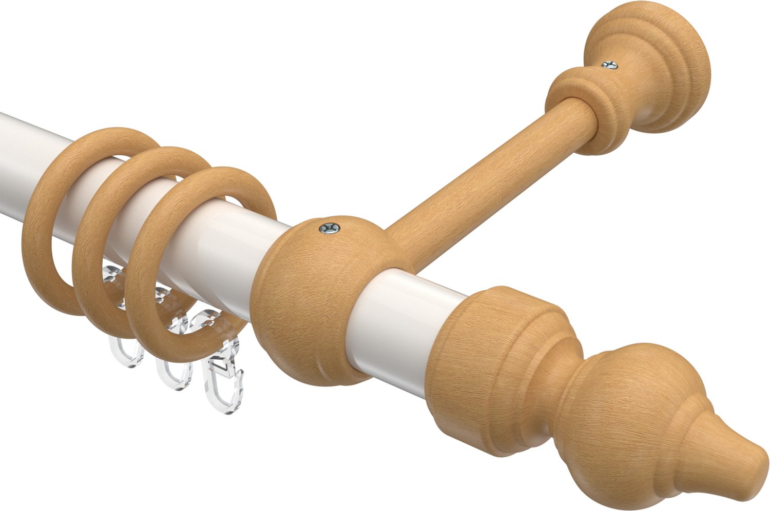Informationen zu Gardinenstange Metall / Holz 28 mm Ø CLASSIC - Rondo Weiß / Buche lackiert: