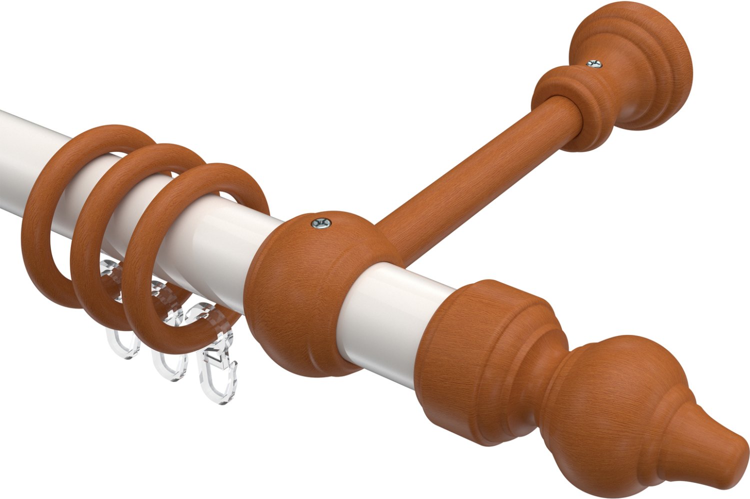 Informationen zu Gardinenstange Metall / Holz 28 mm Ø CLASSIC - Rondo Weiß / Kirschbaum lackiert: