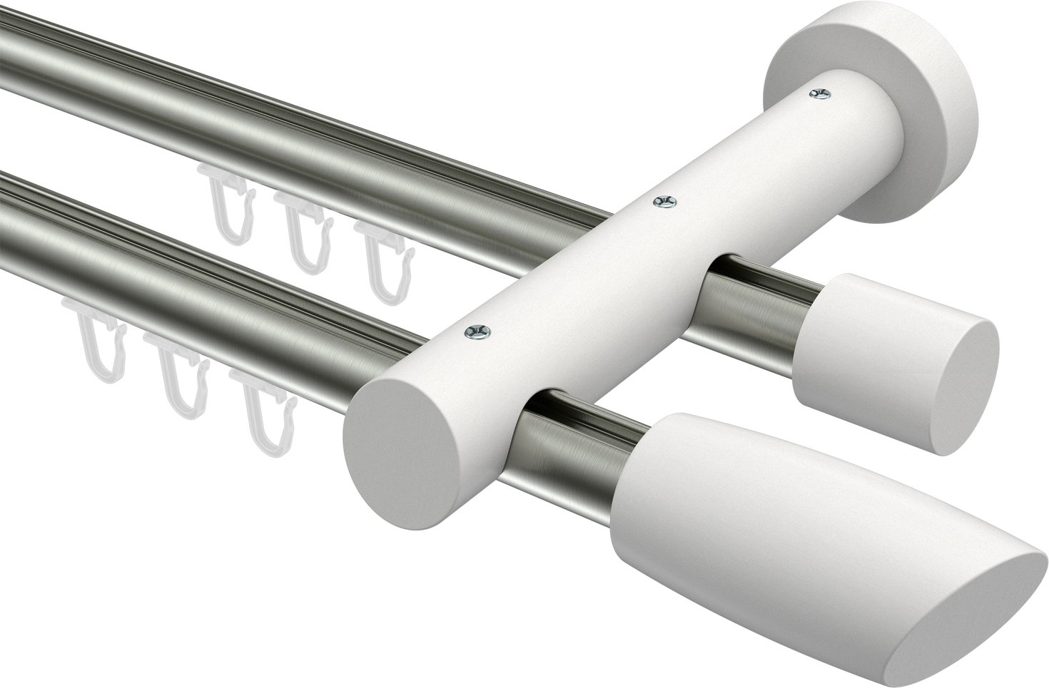 Informationen zu Innenlauf Gardinenstange Aluminium / Holz 20 mm Ø 2-läufig TALENT - Etta Edelstahl-Optik / Weiß lackiert: