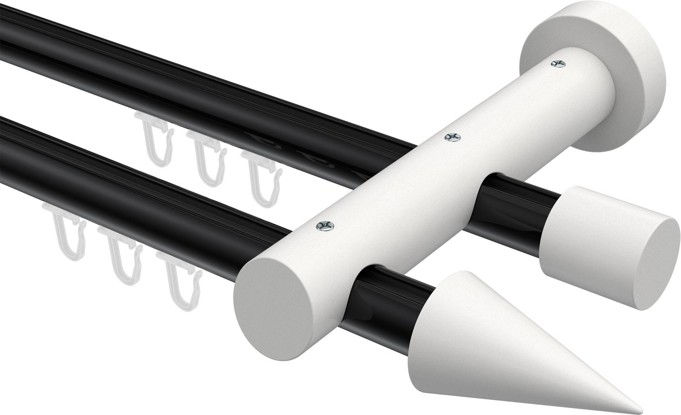 Gardinenstangen mit Innenlauf aus Aluminium / Holz in 20 mm Ø, 2-läufig, Modell TALENT - Siveo Schwarz / Weiß lackiert