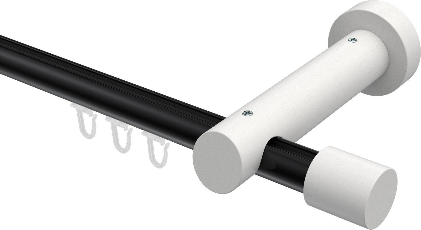 Gardinenstangen mit Innenlauf aus Aluminium / Holz in 20 mm Ø, 1-läufig, Modell TALENT - Feta Schwarz / Weiß lackiert