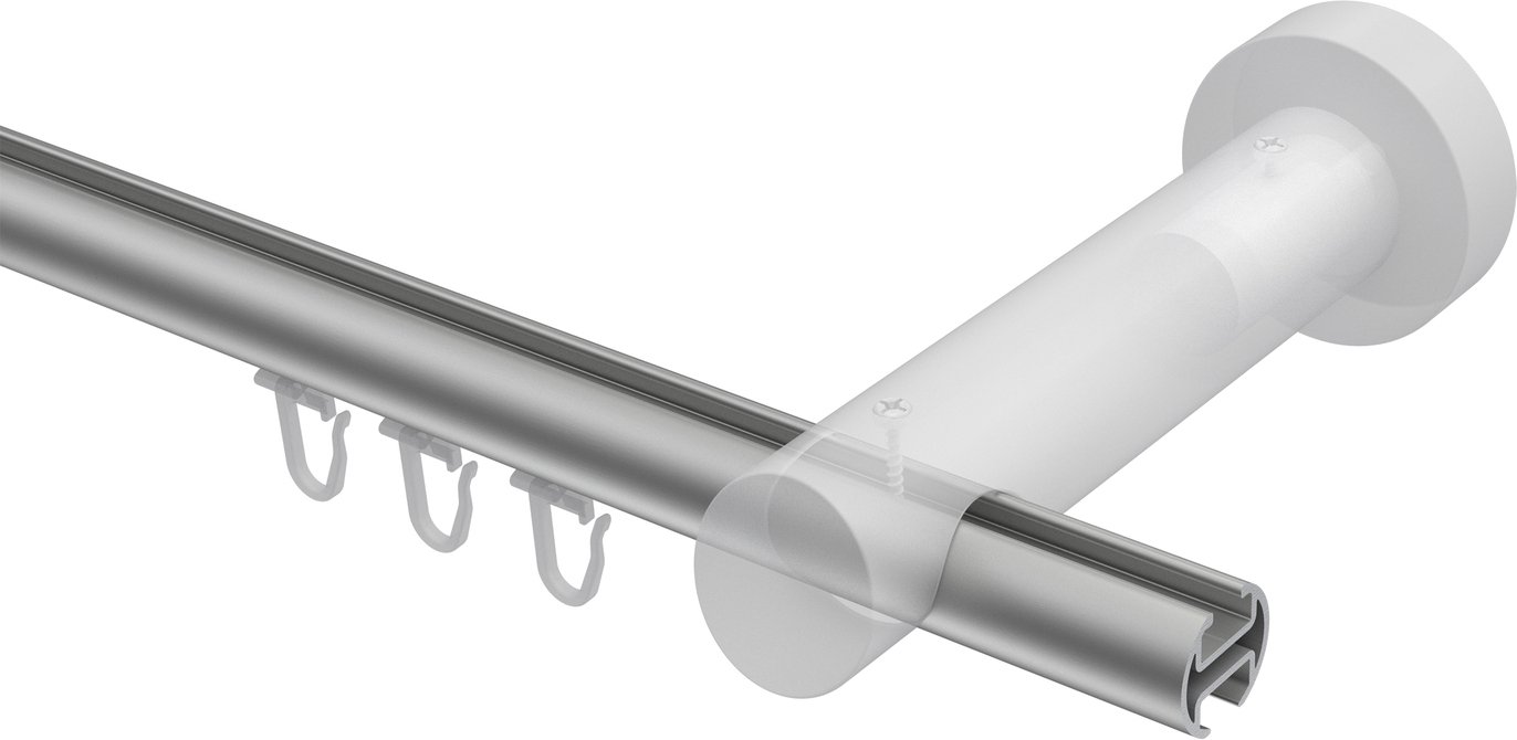 Gardinenstangen mit Innenlauf aus Aluminium / Holz in 20 mm Ø, 1-läufig, Modell TALENT - Siveo Silbergrau / Weiß lackiert