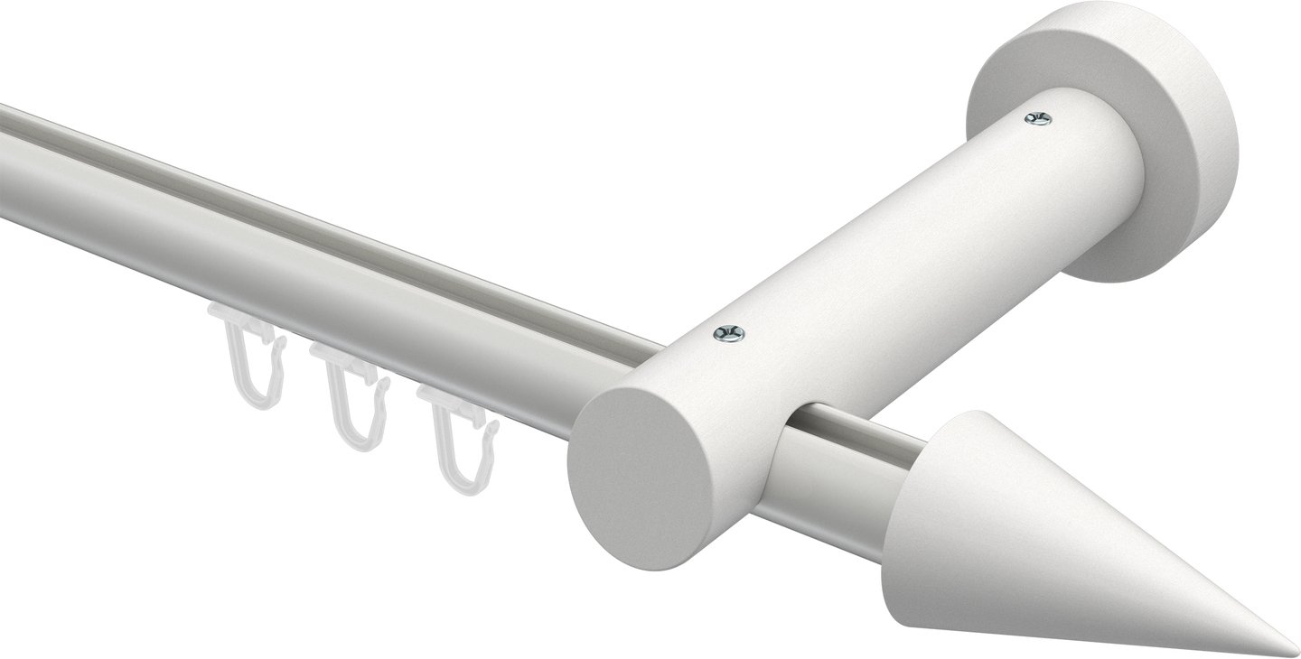 Gardinenstangen mit Innenlauf aus Aluminium / Holz in 20 mm Ø, 1-läufig, Modell TALENT - Siveo Weiß lackiert