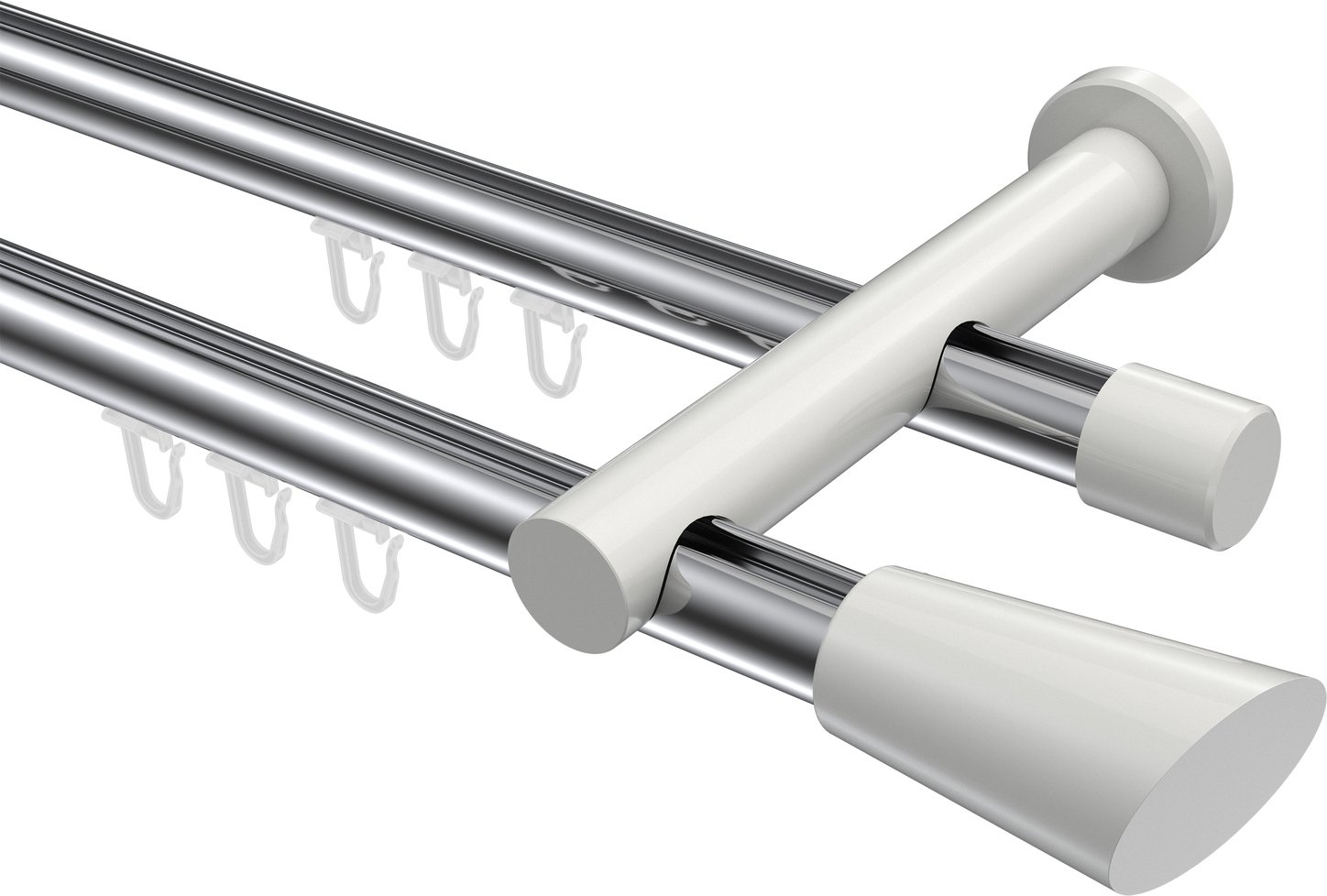 Informationen zu Innenlauf Gardinenstange Aluminium / Metall 20 mm Ø 2-läufig PLATON - Bento Chrom / Weiß: