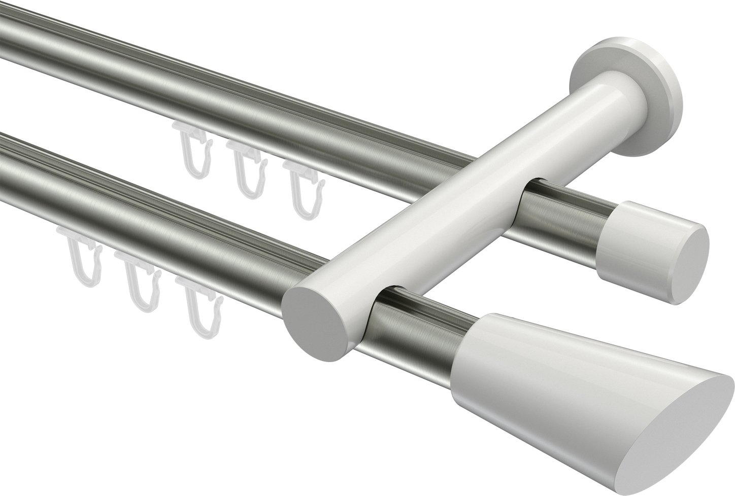 Informationen zu Innenlauf Gardinenstange Aluminium / Metall 20 mm Ø 2-läufig PLATON - Bento Edelstahl-Optik / Weiß: