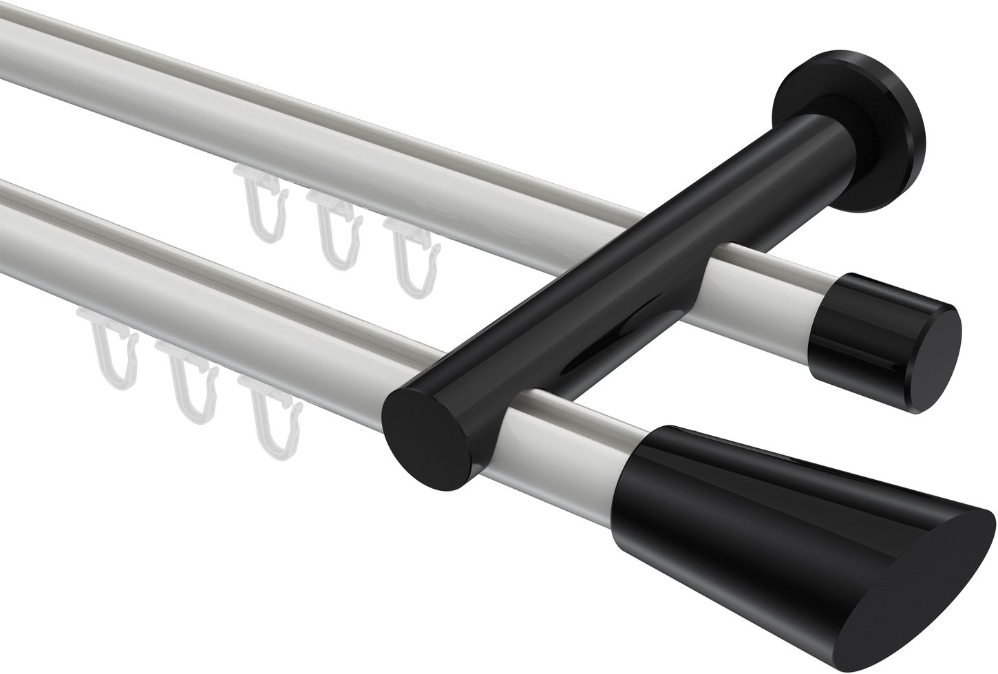 Gardinenstangen mit Innenlauf aus Aluminium / Metall in 20 mm Ø, 2-läufig, Modell PLATON - Bento Weiß / Schwarz