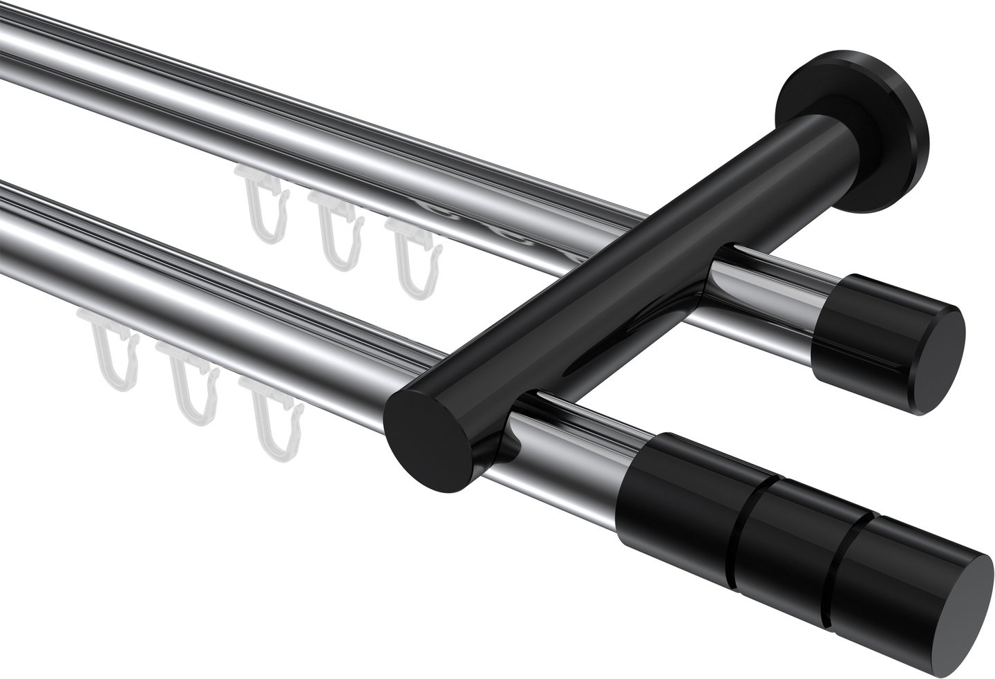 Gardinenstangen mit Innenlauf aus Aluminium / Metall in 20 mm Ø, 2-läufig, Modell PLATON - Elanto Chrom / Schwarz