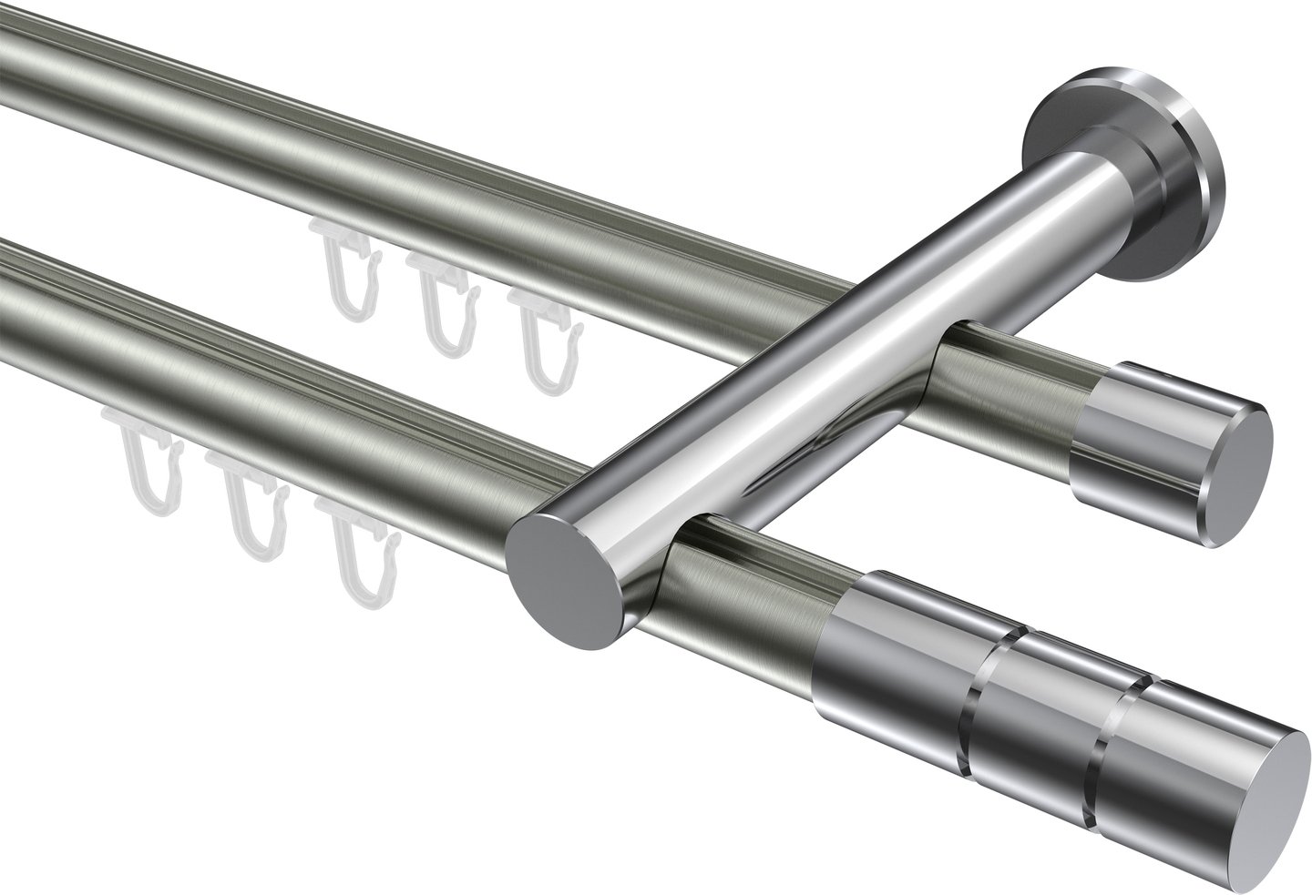 Gardinenstangen mit Innenlauf aus Aluminium / Metall in 20 mm Ø, 2-läufig, Modell PLATON - Elanto Edelstahl-Optik / Chrom
