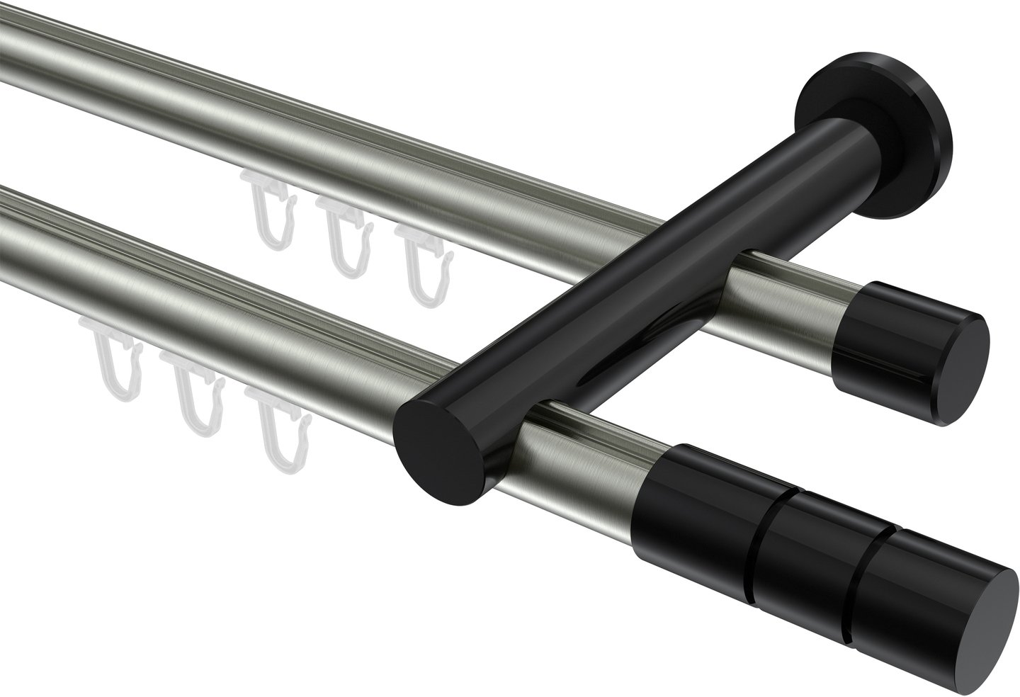 Informationen zu Innenlauf Gardinenstange Aluminium / Metall 20 mm Ø 2-läufig PLATON - Elanto Edelstahl-Optik / Schwarz: