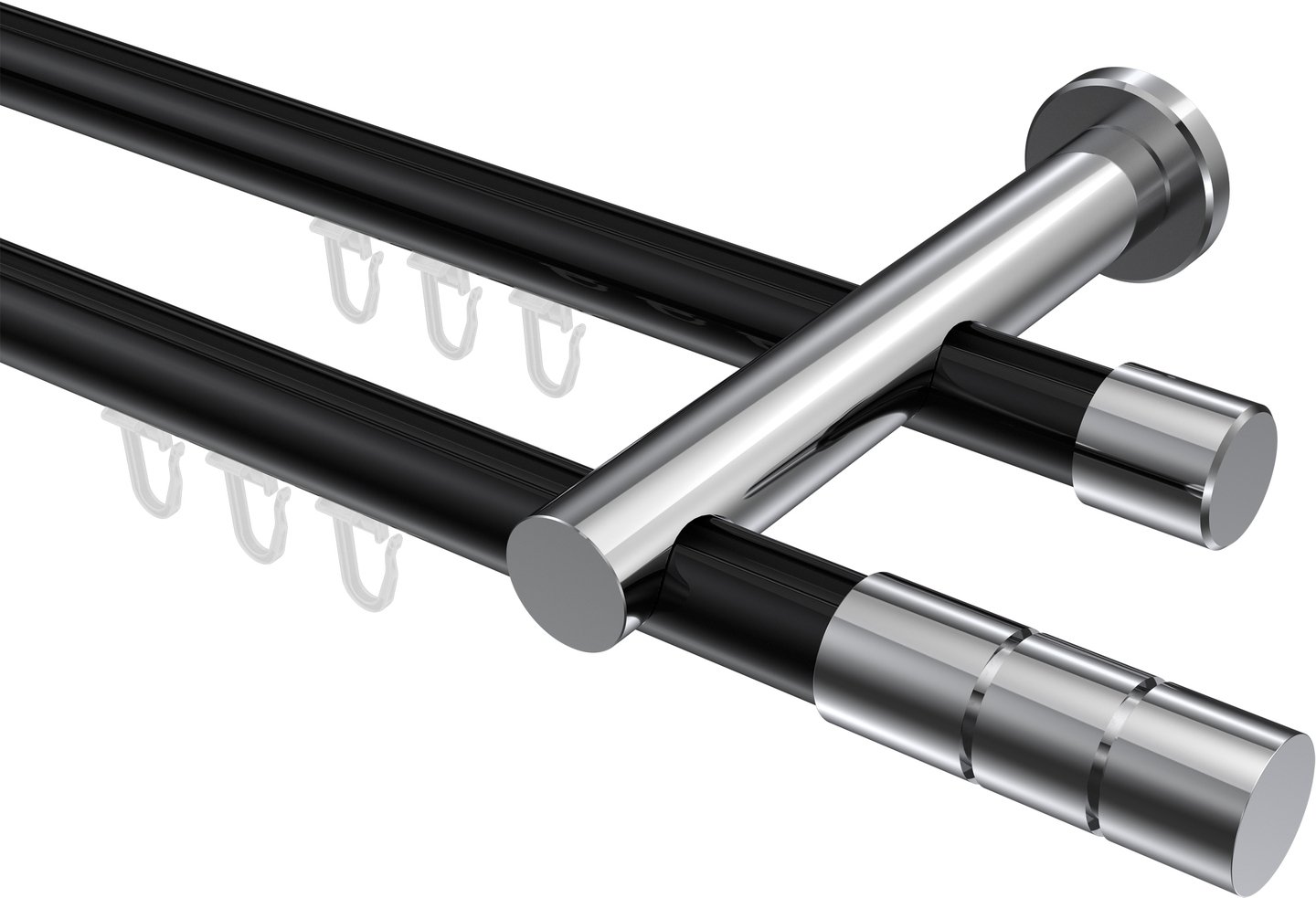 Gardinenstangen mit Innenlauf aus Aluminium / Metall in 20 mm Ø, 2-läufig, Modell PLATON - Elanto Schwarz / Chrom