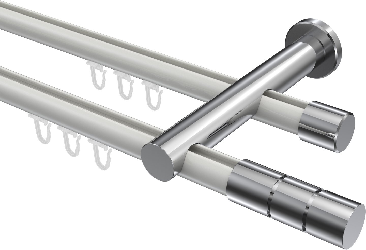 Gardinenstangen mit Innenlauf aus Aluminium / Metall in 20 mm Ø, 2-läufig, Modell PLATON - Elanto Weiß / Chrom