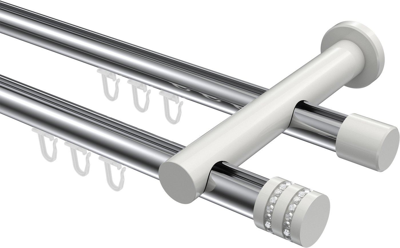 Gardinenstangen mit Innenlauf aus Aluminium / Metall in 20 mm Ø, 2-läufig, Modell PLATON - Estana Chrom / Weiß