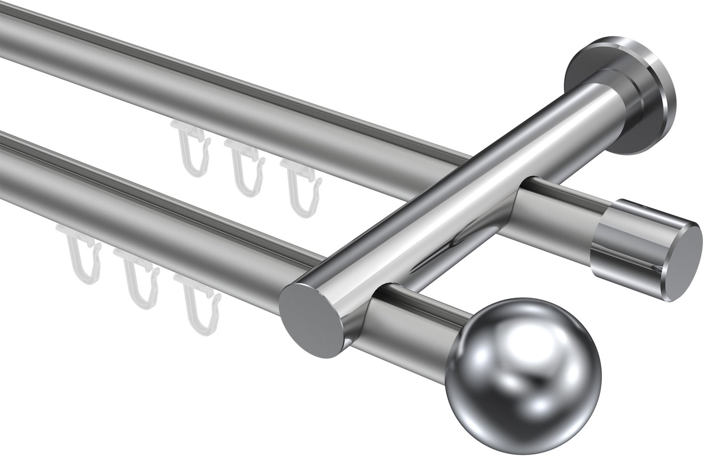 Gardinenstangen mit Innenlauf aus Aluminium / Metall in 20 mm Ø, 2-läufig, Modell PLATON - Luino Silbergrau / Chrom