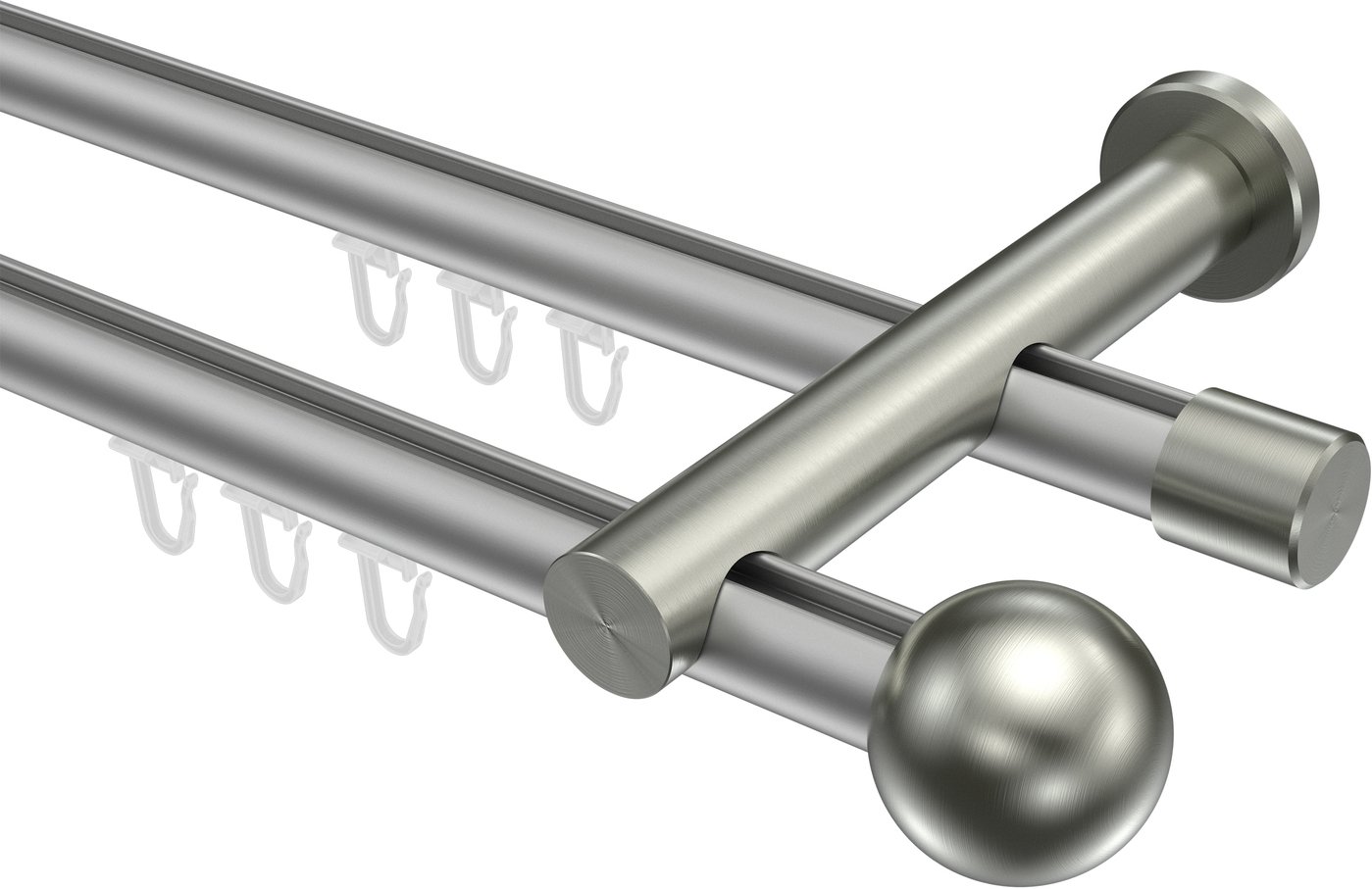 Gardinenstangen mit Innenlauf aus Aluminium / Metall in 20 mm Ø, 2-läufig, Modell PLATON - Luino Silbergrau / Edelstahl-Optik