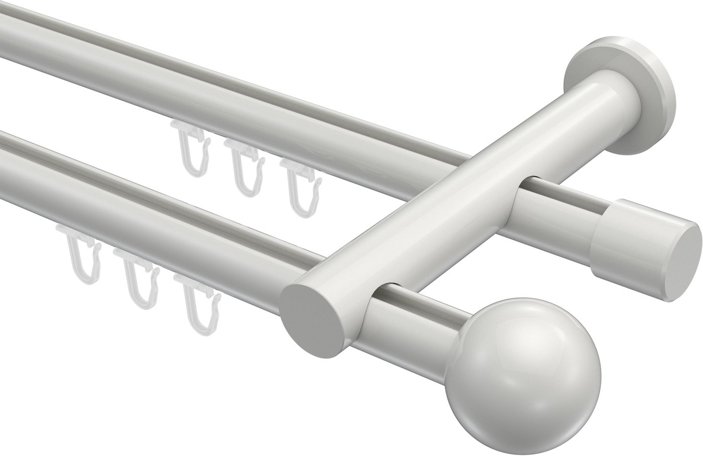 Gardinenstangen mit Innenlauf aus Aluminium / Metall in 20 mm Ø, 2-läufig, Modell PLATON - Luino Weiß