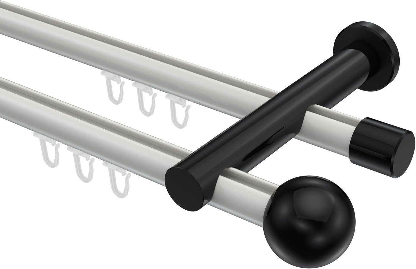Informationen zu Innenlauf Gardinenstange Aluminium / Metall 20 mm Ø 2-läufig PLATON - Luino Weiß / Schwarz: