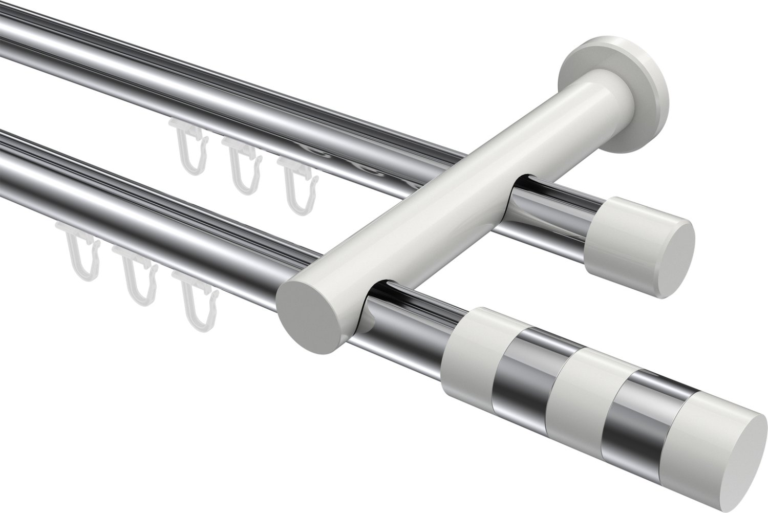 Gardinenstangen mit Innenlauf aus Aluminium / Metall in 20 mm Ø, 2-läufig, Modell PLATON - Mavell Chrom / Weiß
