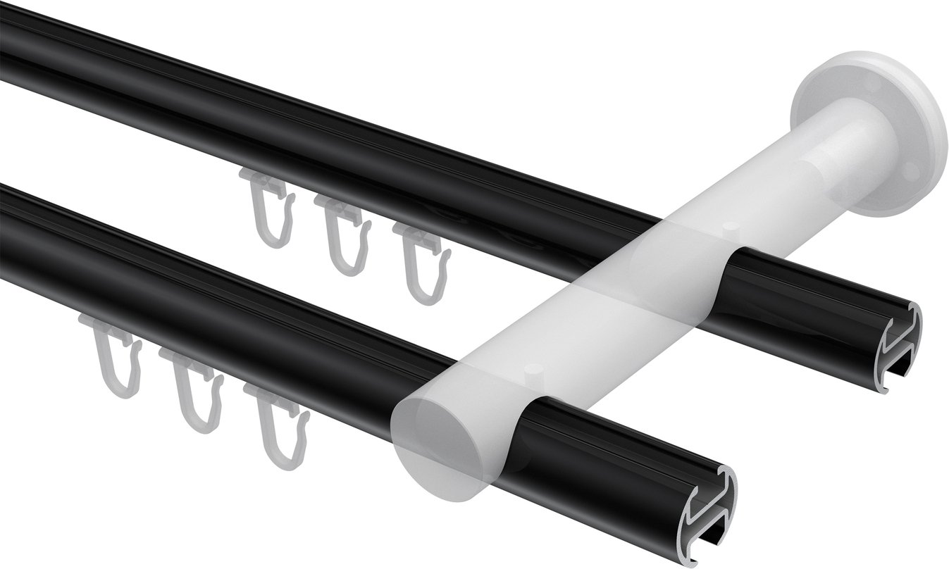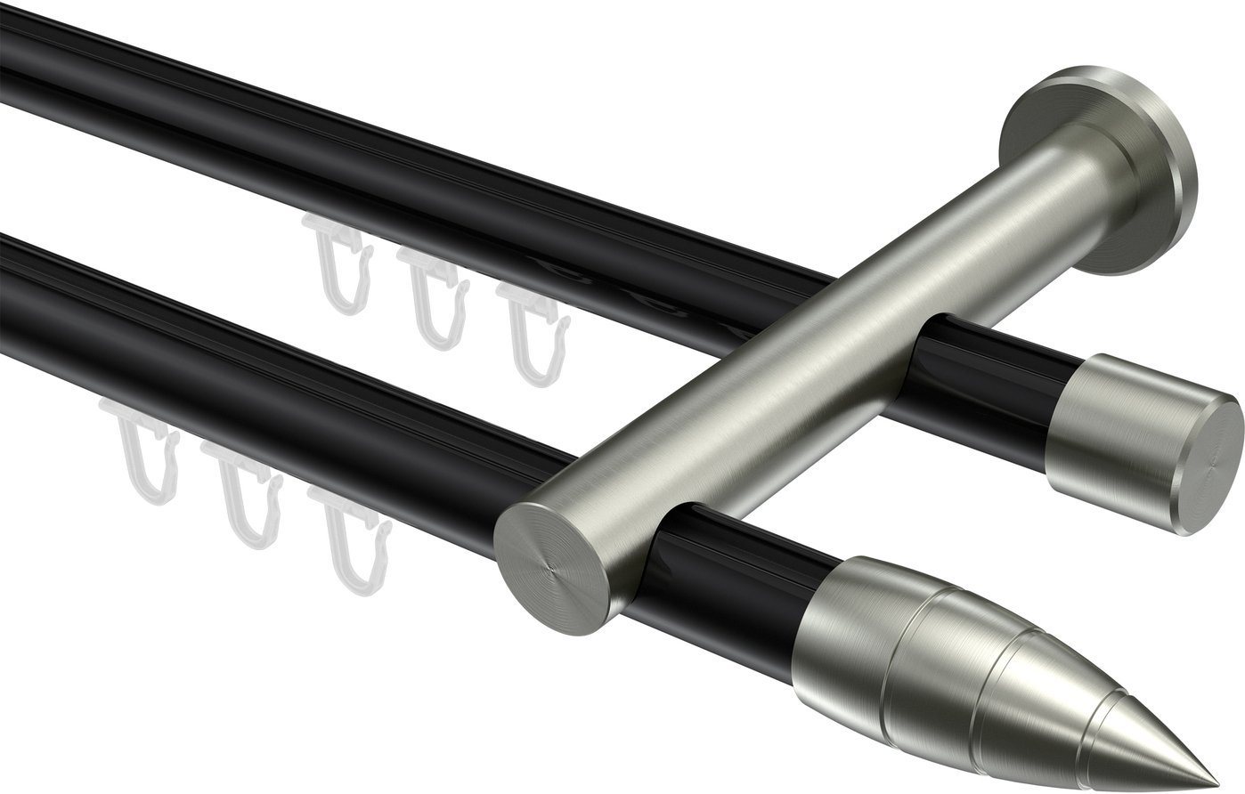 Informationen zu Innenlauf Gardinenstange Aluminium / Metall 20 mm Ø 2-läufig PLATON - Samanto Schwarz / Edelstahl-Optik: