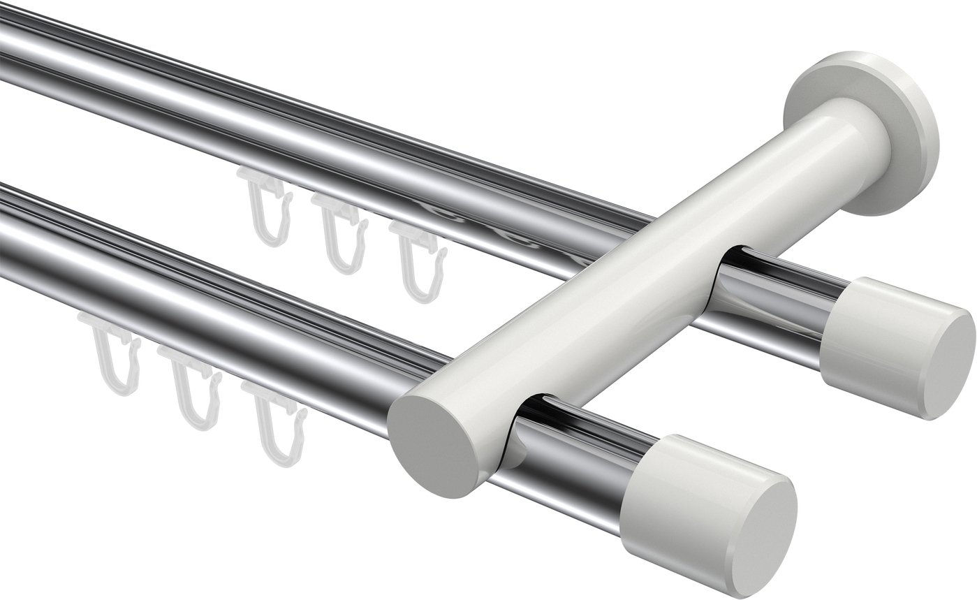 Informationen zu Innenlauf Gardinenstange Aluminium / Metall 20 mm Ø 2-läufig PLATON - Santo Chrom / Weiß: