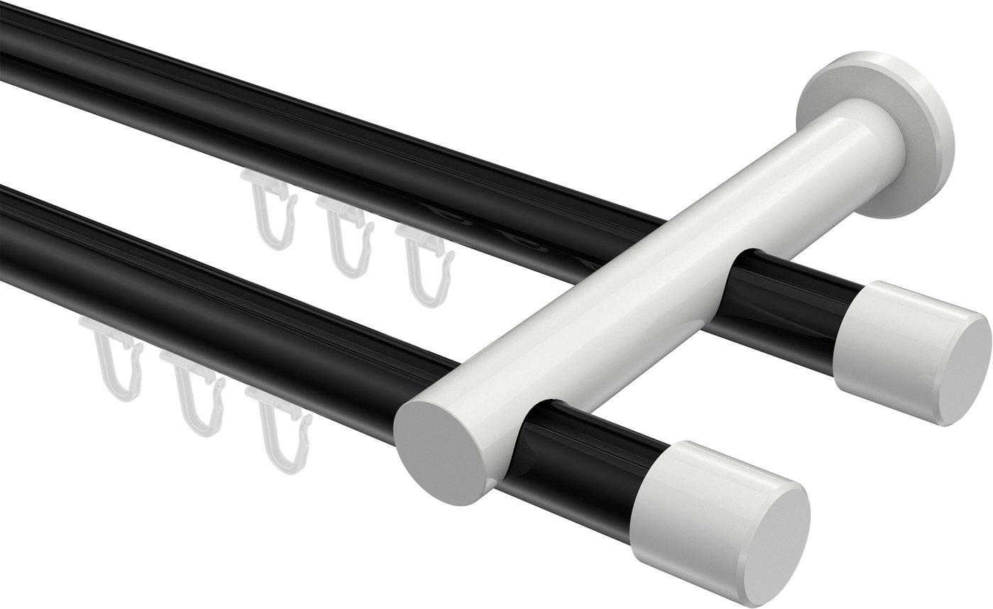 Gardinenstangen mit Innenlauf aus Aluminium / Metall in 20 mm Ø, 2-läufig, Modell PLATON - Santo Schwarz / Weiß