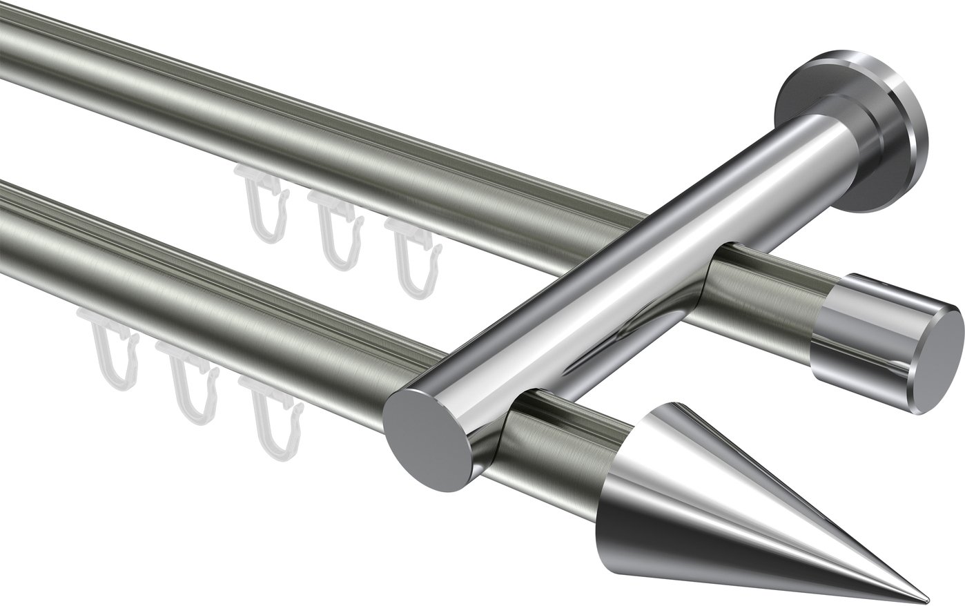 Informationen zu Innenlauf Gardinenstange Aluminium / Metall 20 mm Ø 2-läufig PLATON - Savio Edelstahl-Optik / Chrom: