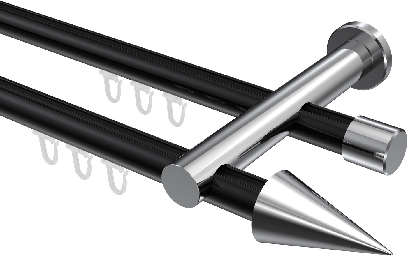 Gardinenstangen mit Innenlauf aus Aluminium / Metall in 20 mm Ø, 2-läufig, Modell PLATON - Savio Schwarz / Chrom