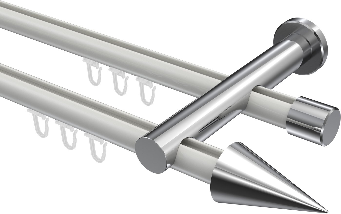 Gardinenstangen mit Innenlauf aus Aluminium / Metall in 20 mm Ø, 2-läufig, Modell PLATON - Savio Weiß / Chrom