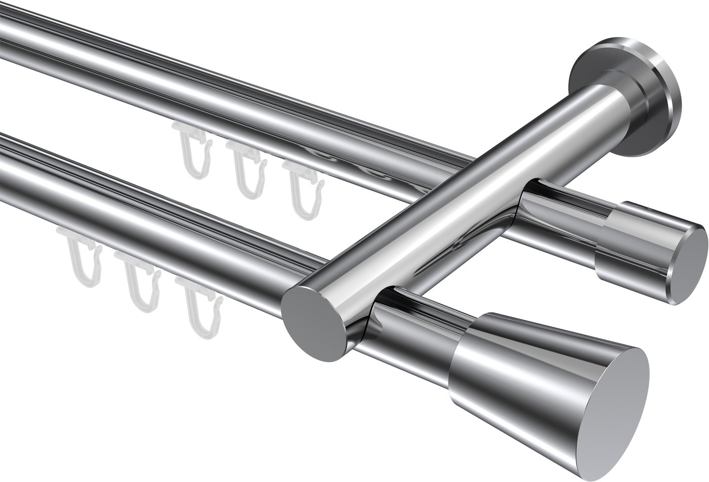 Gardinenstangen mit Innenlauf aus Aluminium / Metall in 20 mm Ø, 2-läufig, Modell PLATON - Sitra Chrom
