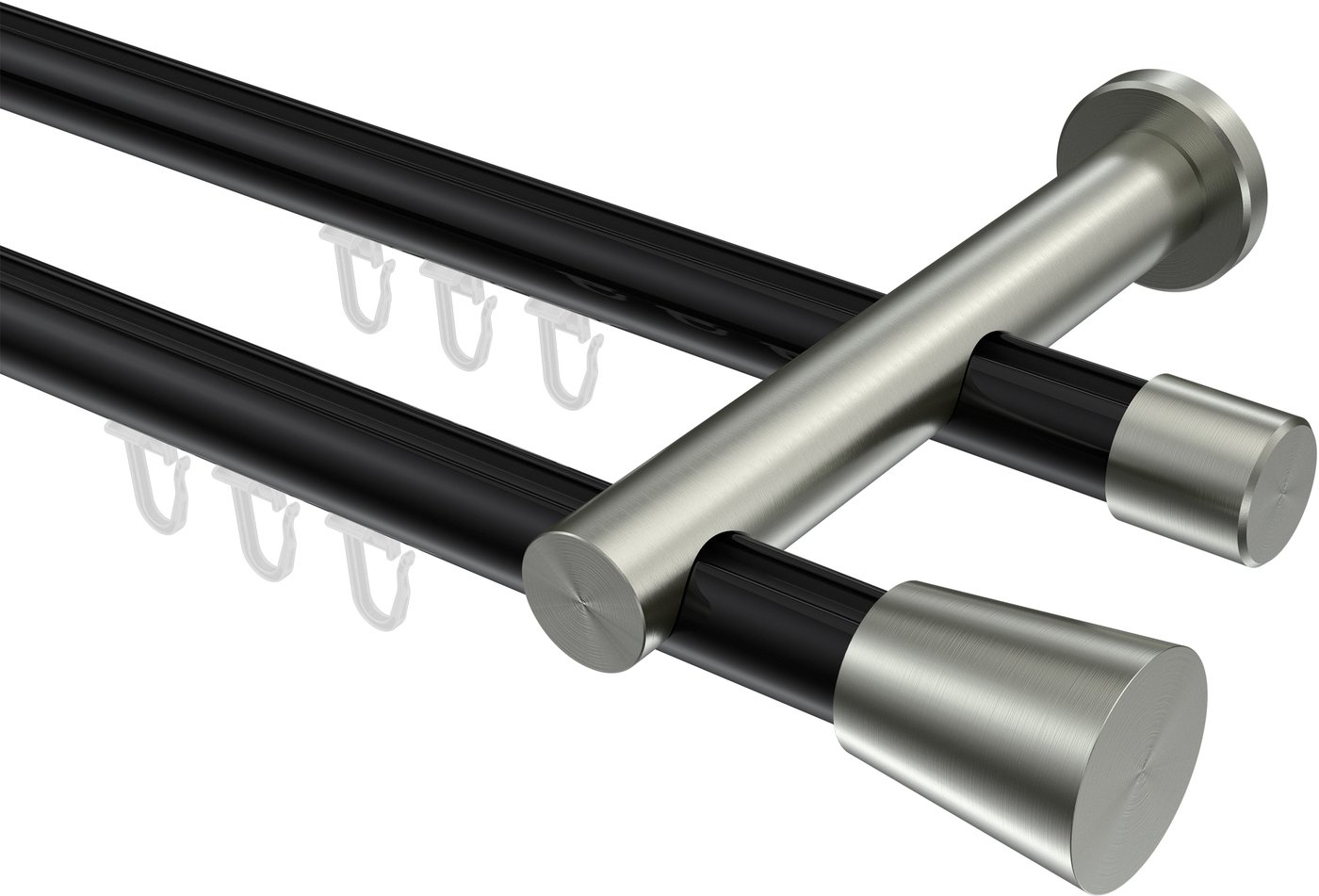 Informationen zu Innenlauf Gardinenstange Aluminium / Metall 20 mm Ø 2-läufig PLATON - Sitra Schwarz / Edelstahl-Optik: