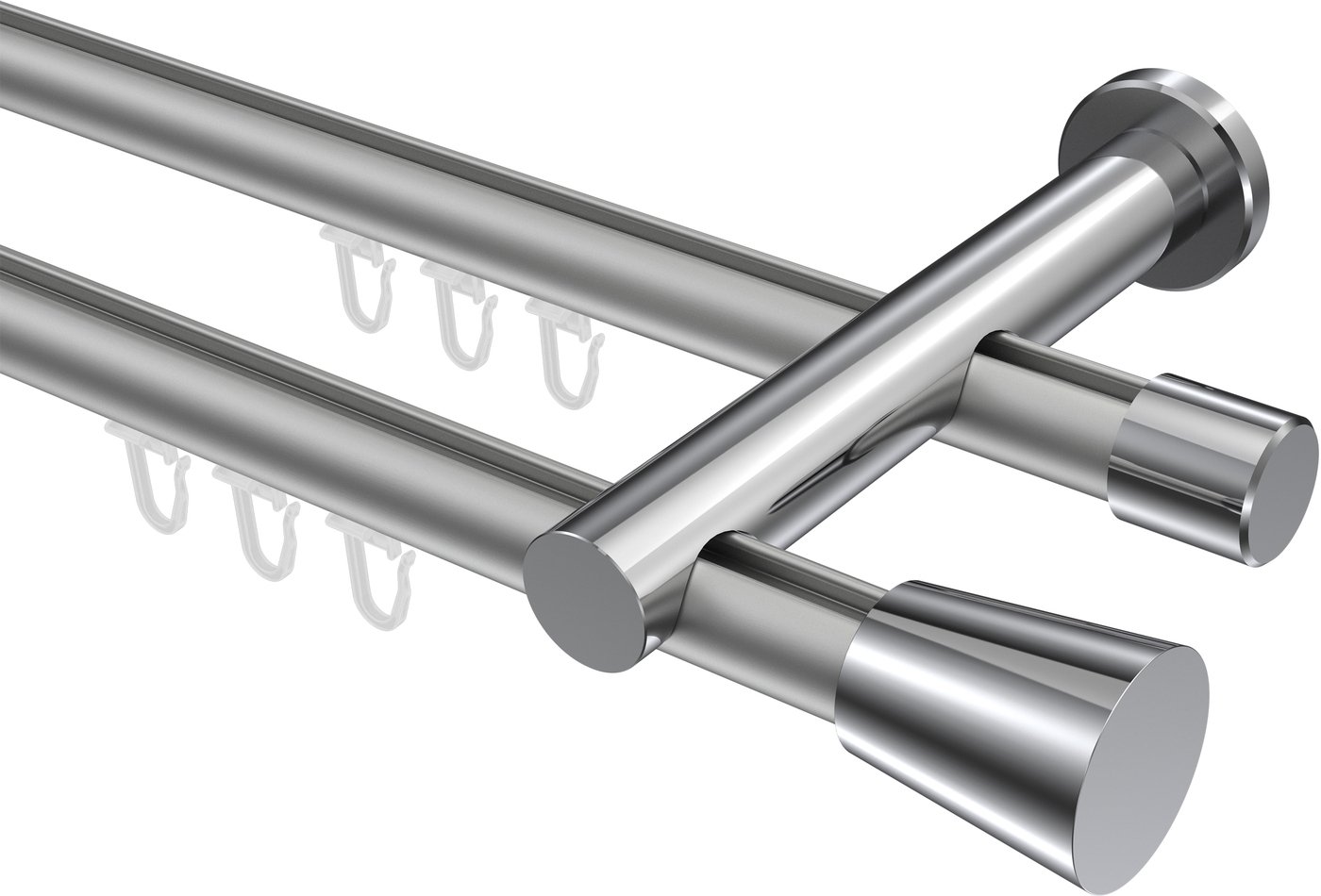 Gardinenstangen mit Innenlauf aus Aluminium / Metall in 20 mm Ø, 2-läufig, Modell PLATON - Sitra Silbergrau / Chrom
