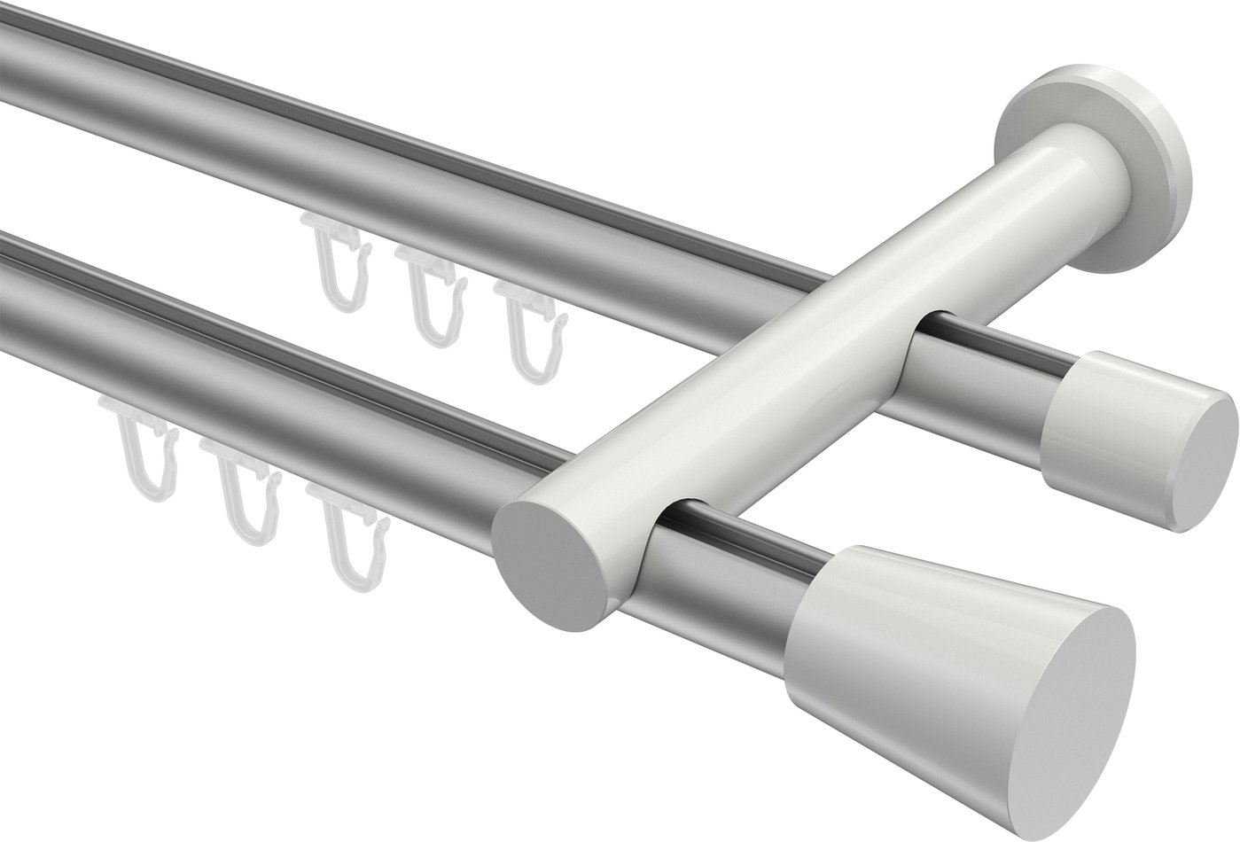 Informationen zu Innenlauf Gardinenstange Aluminium / Metall 20 mm Ø 2-läufig PLATON - Sitra Silbergrau / Weiß: