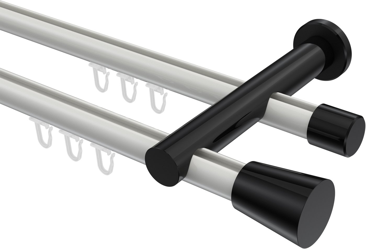 Gardinenstangen mit Innenlauf aus Aluminium / Metall in 20 mm Ø, 2-läufig, Modell PLATON - Sitra Weiß / Schwarz