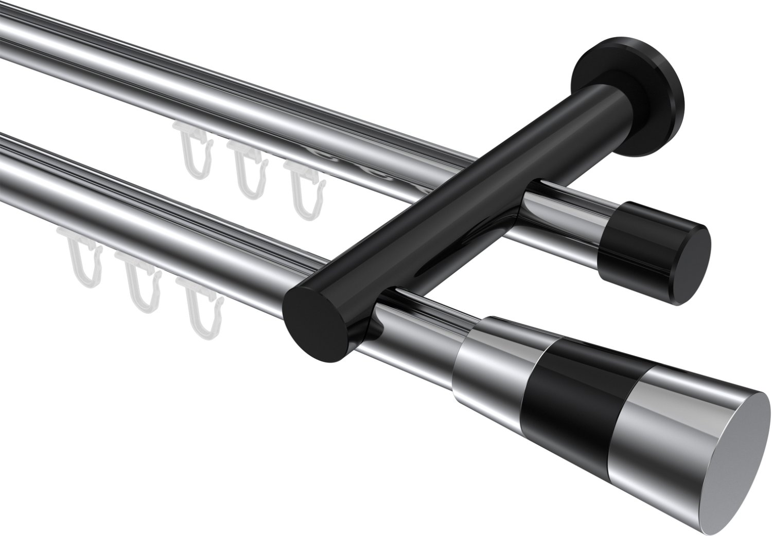 Informationen zu Innenlauf Gardinenstange Aluminium / Metall 20 mm Ø 2-läufig PLATON - Tanara Chrom / Schwarz: