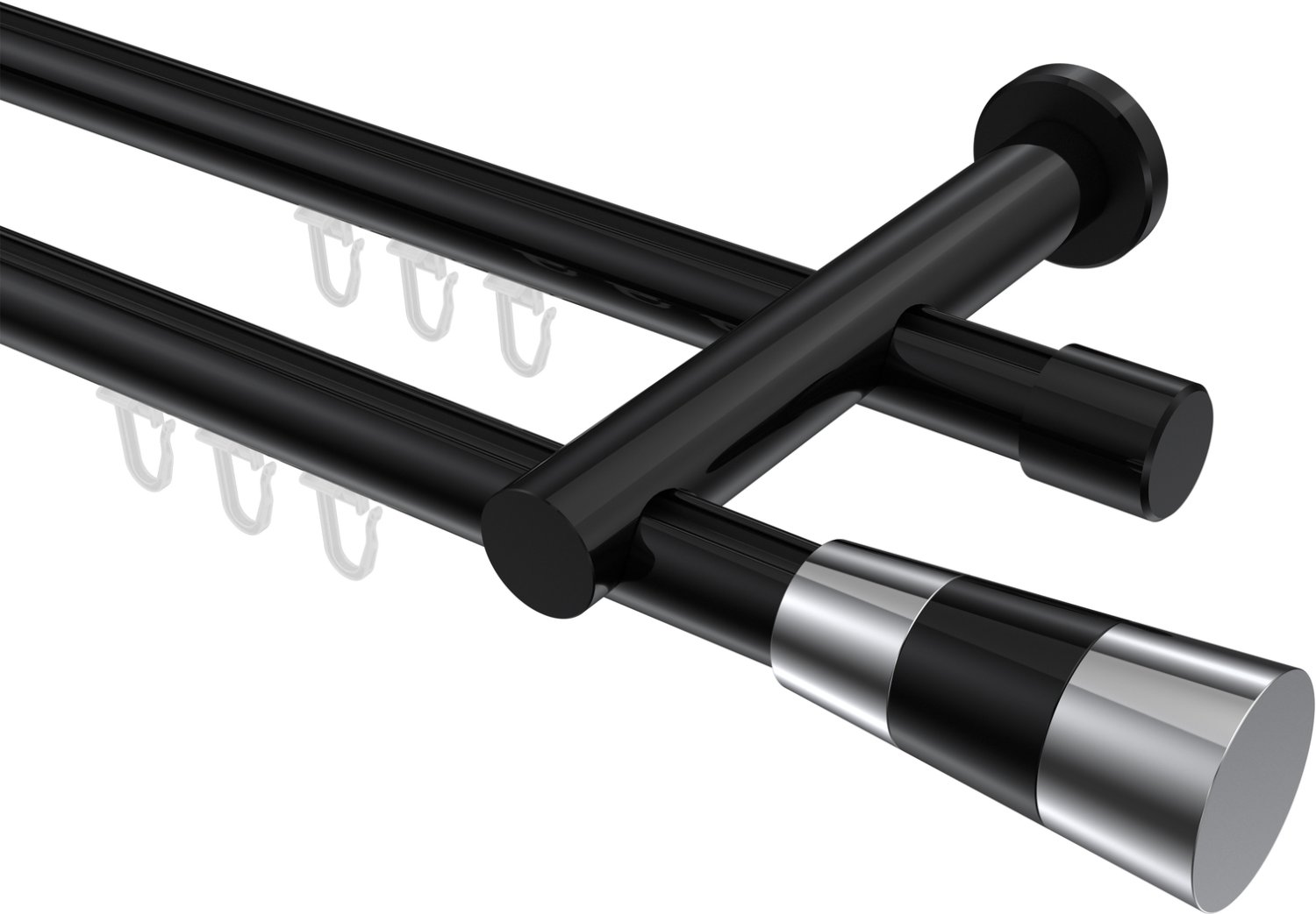 Informationen zu Innenlauf Gardinenstange Aluminium / Metall 20 mm Ø 2-läufig PLATON - Tanara Schwarz: