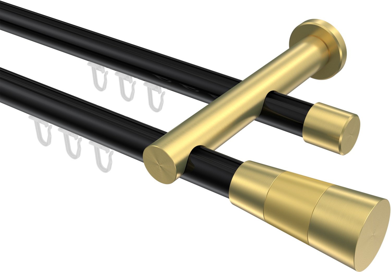 Informationen zu Innenlauf Gardinenstange Aluminium / Metall 20 mm Ø 2-läufig PLATON - Tanara Schwarz / Messing-Optik: