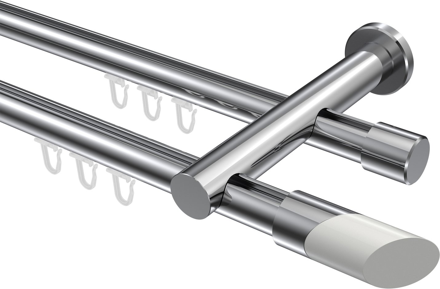 Gardinenstangen mit Innenlauf aus Aluminium / Metall in 20 mm Ø, 2-läufig, Modell PLATON - Verano Chrom