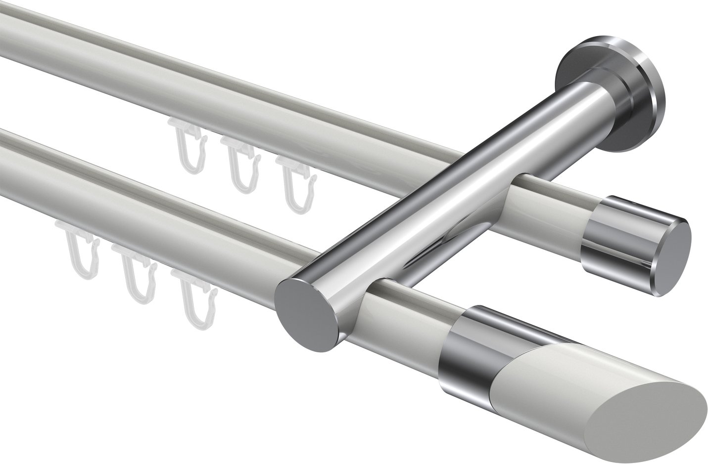 Informationen zu Innenlauf Gardinenstange Aluminium / Metall 20 mm Ø 2-läufig PLATON - Verano Weiß / Chrom: