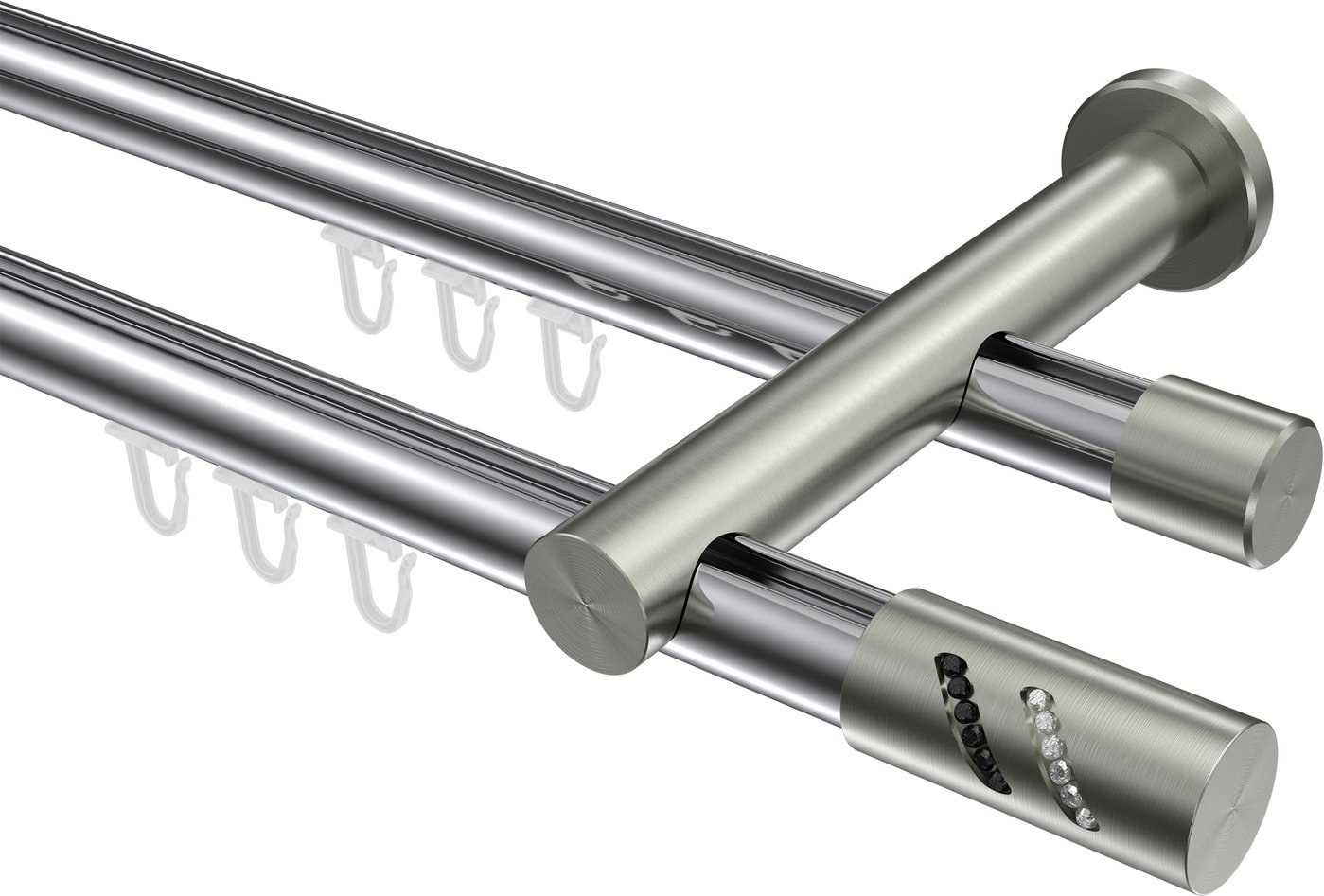Gardinenstangen mit Innenlauf aus Aluminium / Metall in 20 mm Ø, 2-läufig, Modell PLATON - Zoena Chrom / Edelstahl-Optik