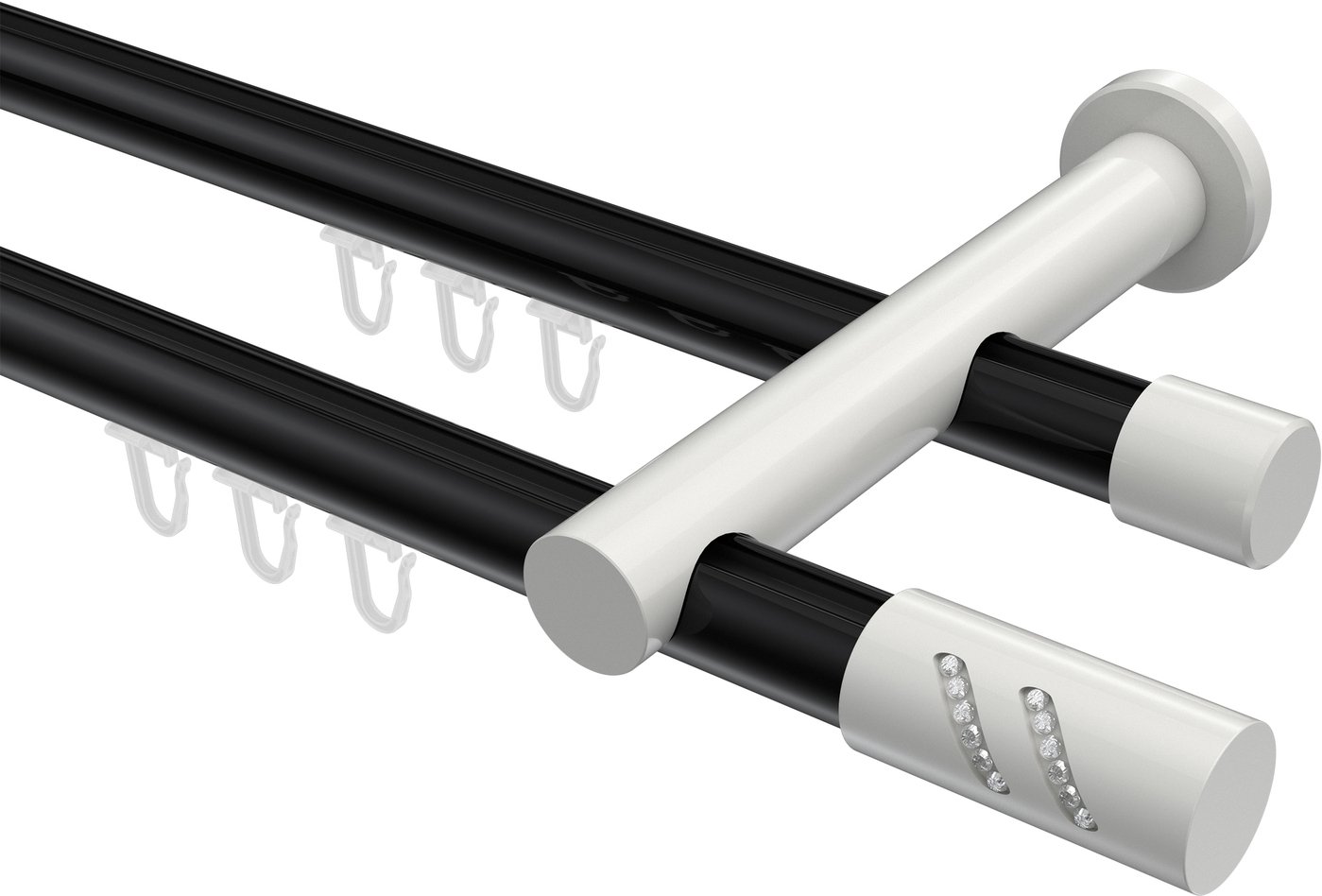 Informationen zu Innenlauf Gardinenstange Aluminium / Metall 20 mm Ø 2-läufig PLATON - Zoena Schwarz / Weiß: