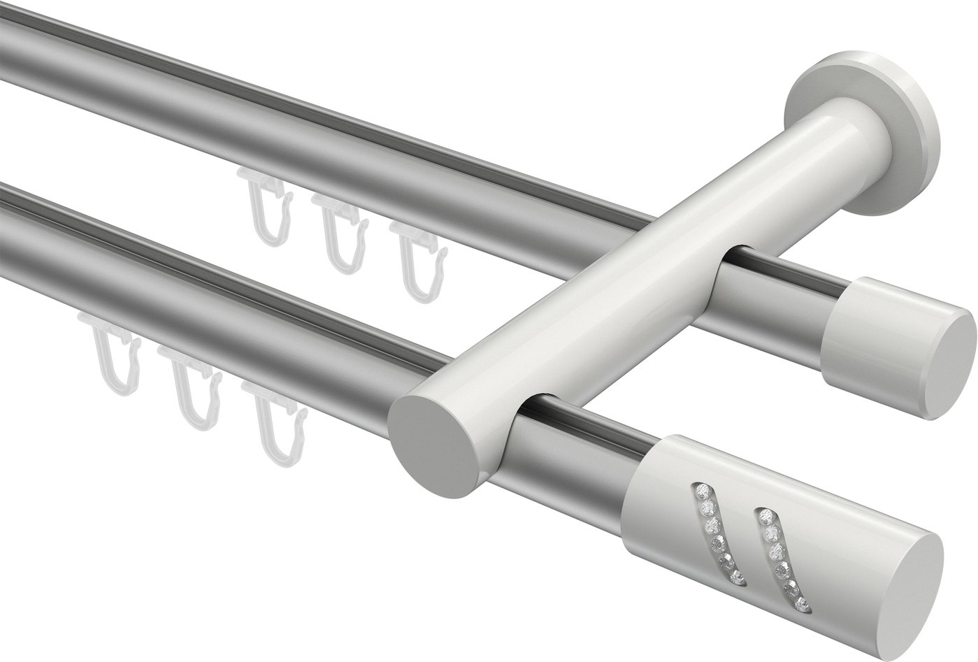 Gardinenstangen mit Innenlauf aus Aluminium / Metall in 20 mm Ø, 2-läufig, Modell PLATON - Zoena Silbergrau / Weiß