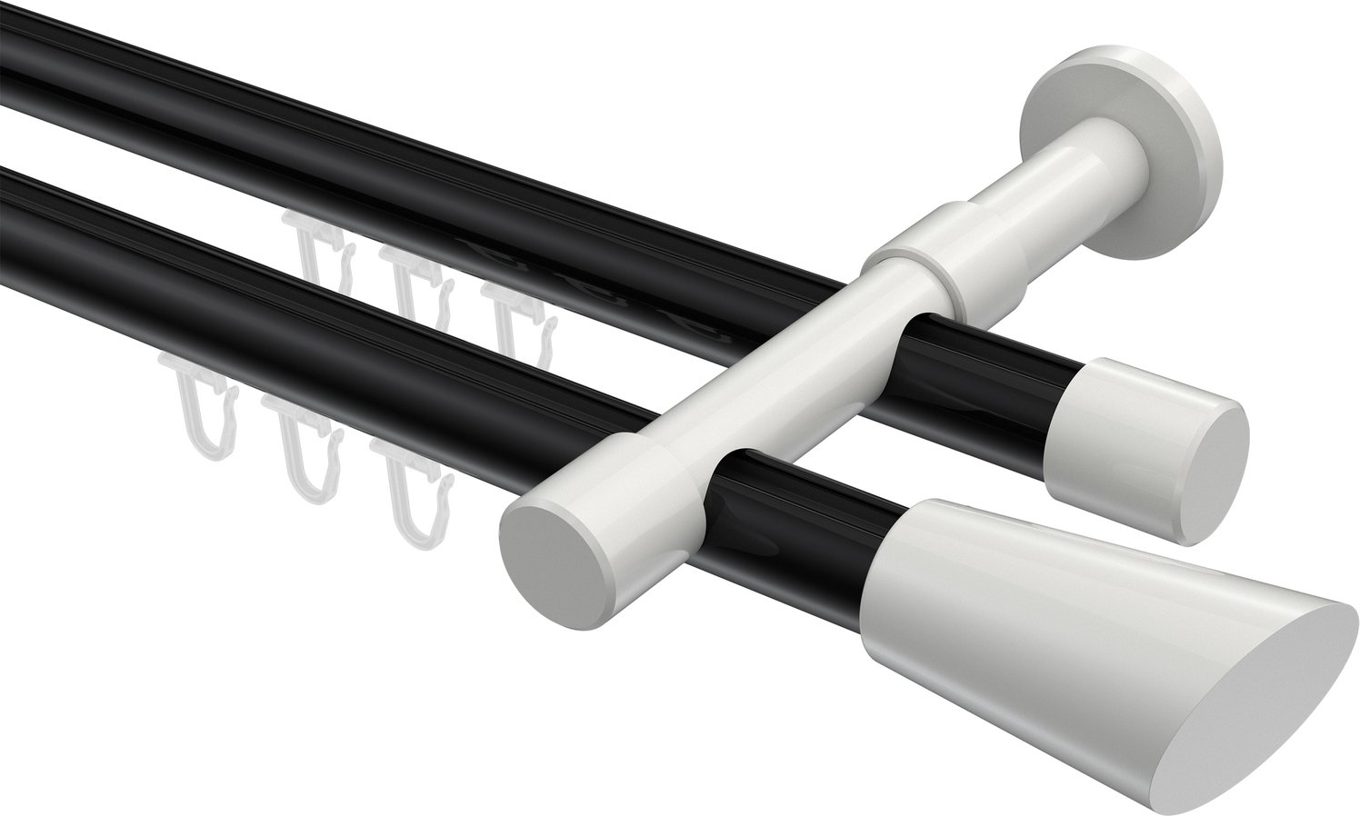 Informationen zu Innenlauf Gardinenstange Aluminium / Metall 20 mm Ø 2-läufig PRESTIGE - Bento Schwarz / Weiß: