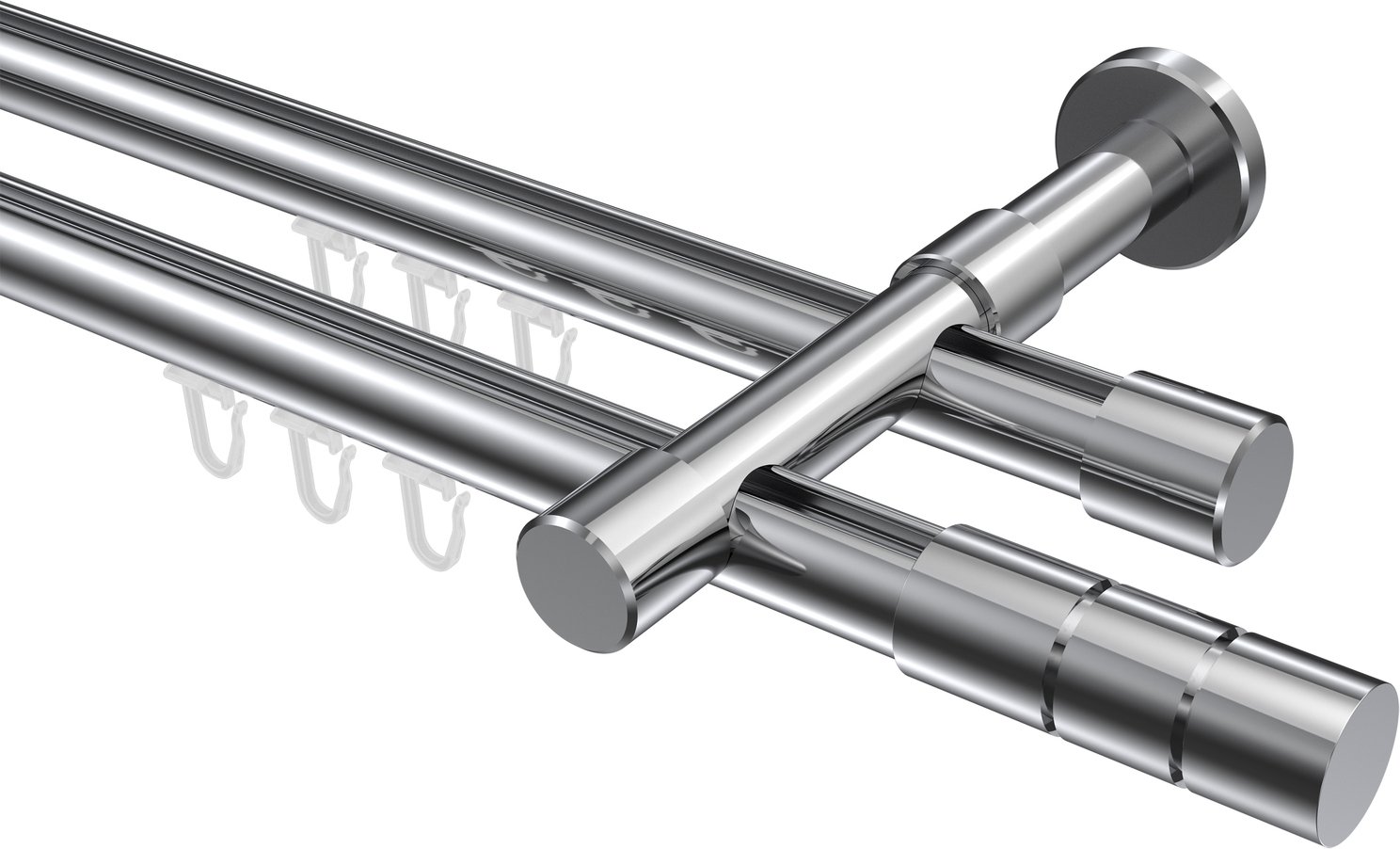 Gardinenstangen mit Innenlauf aus Aluminium / Metall in 20 mm Ø, 2-läufig, Modell PRESTIGE - Elanto Chrom