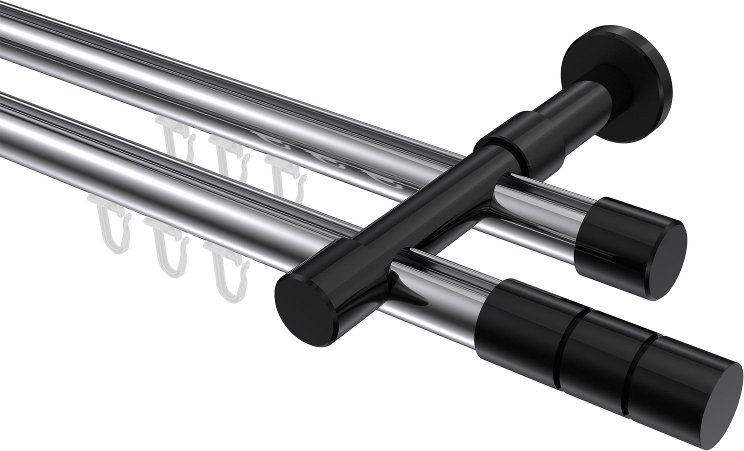 Gardinenstangen mit Innenlauf aus Aluminium / Metall in 20 mm Ø, 2-läufig, Modell PRESTIGE - Elanto Chrom / Schwarz