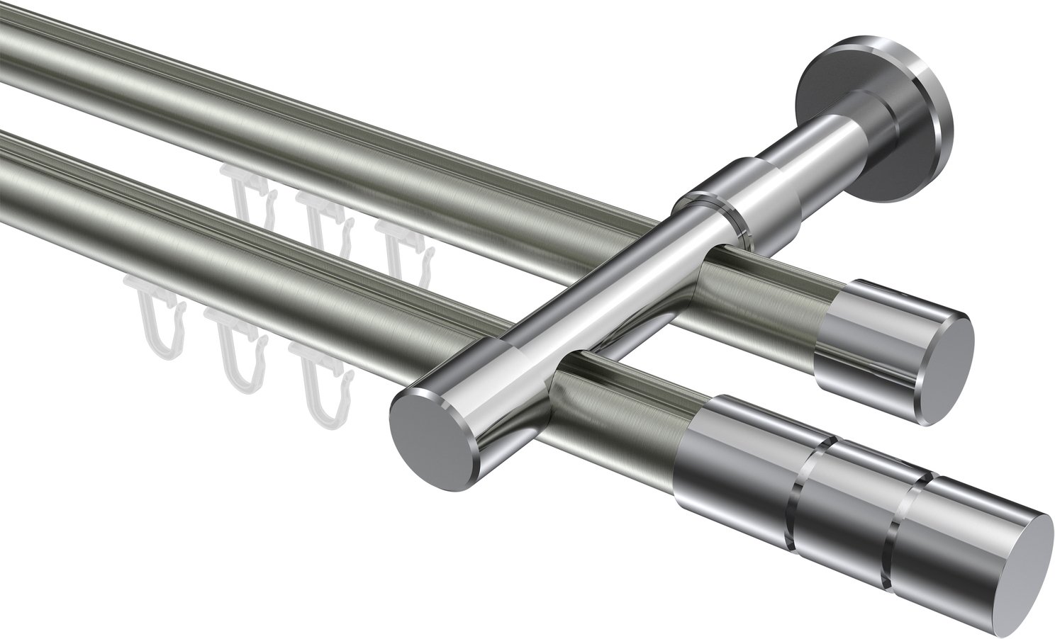 Informationen zu Innenlauf Gardinenstange Aluminium / Metall 20 mm Ø 2-läufig PRESTIGE - Elanto Edelstahl-Optik / Chrom:
