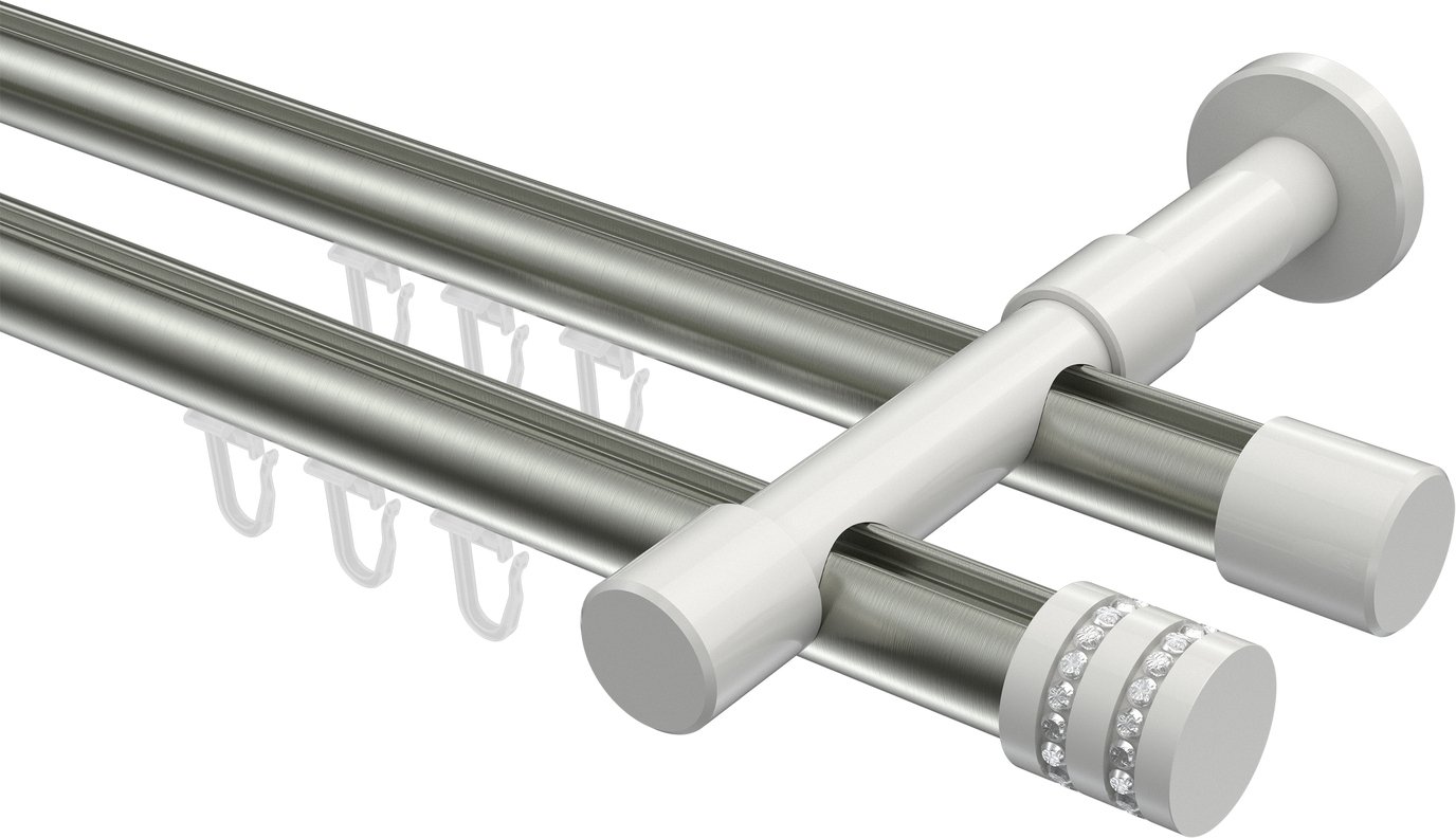 Gardinenstangen mit Innenlauf aus Aluminium / Metall in 20 mm Ø, 2-läufig, Modell PRESTIGE - Estana Edelstahl-Optik / Weiß