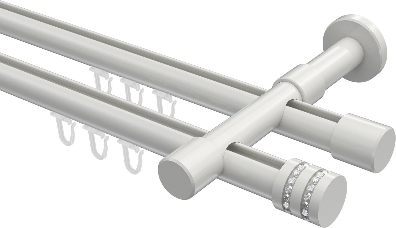 Informationen zu Innenlauf Gardinenstange Aluminium / Metall 20 mm Ø 2-läufig PRESTIGE - Estana Weiß: