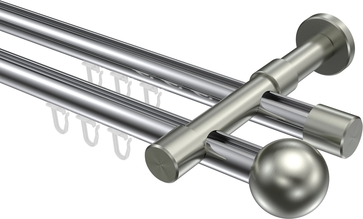 Gardinenstangen mit Innenlauf aus Aluminium / Metall in 20 mm Ø, 2-läufig, Modell PRESTIGE - Luino Chrom / Edelstahl-Optik