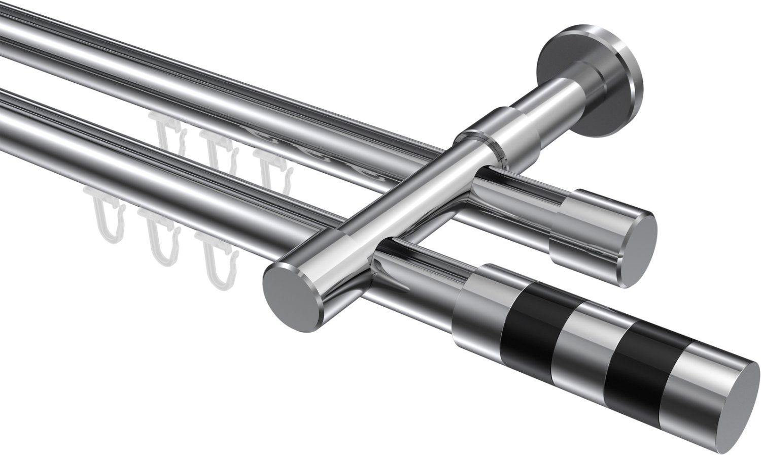 Gardinenstangen mit Innenlauf aus Aluminium / Metall in 20 mm Ø, 2-läufig, Modell PRESTIGE - Mavell Chrom